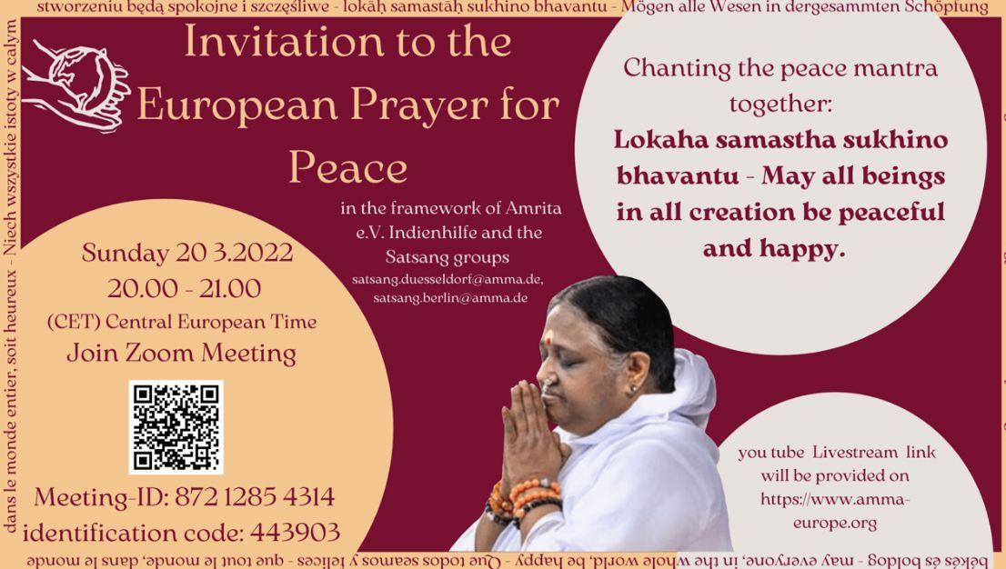 Amma’s Peace Prayer for Ukraine tomorrow + Free Online Group Healing on Wednesday