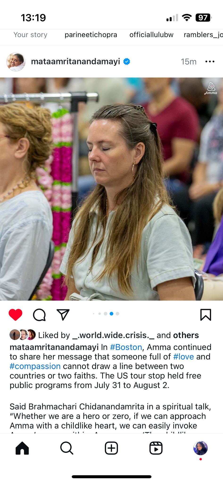 I would like to share a few more anecdotes from the U.S. Tour with Amma this summer.