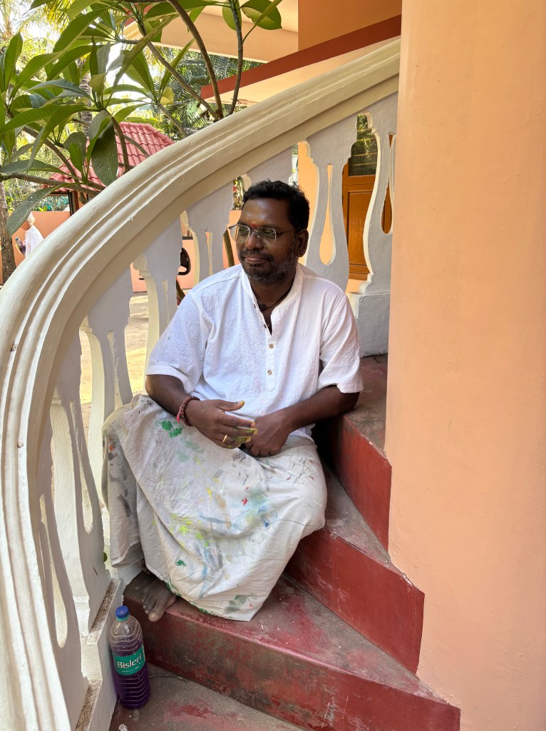 The ashram artist from the beautiful murals I sent in the previous newsletter is Radesh. Here he is 🙂