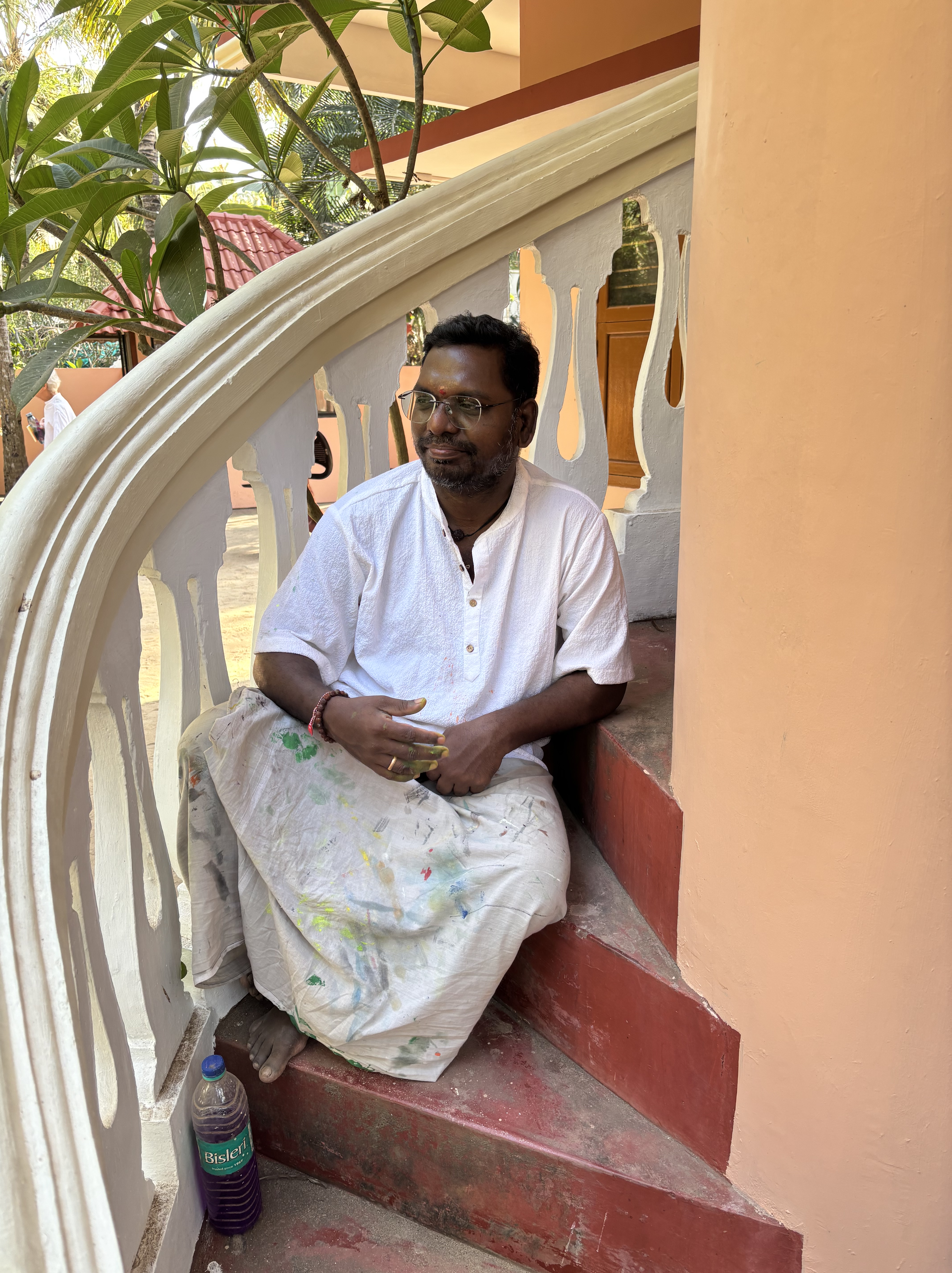 The ashram artist from the beautiful murals I sent in the previous newsletter is Radesh. Here he is 🙂