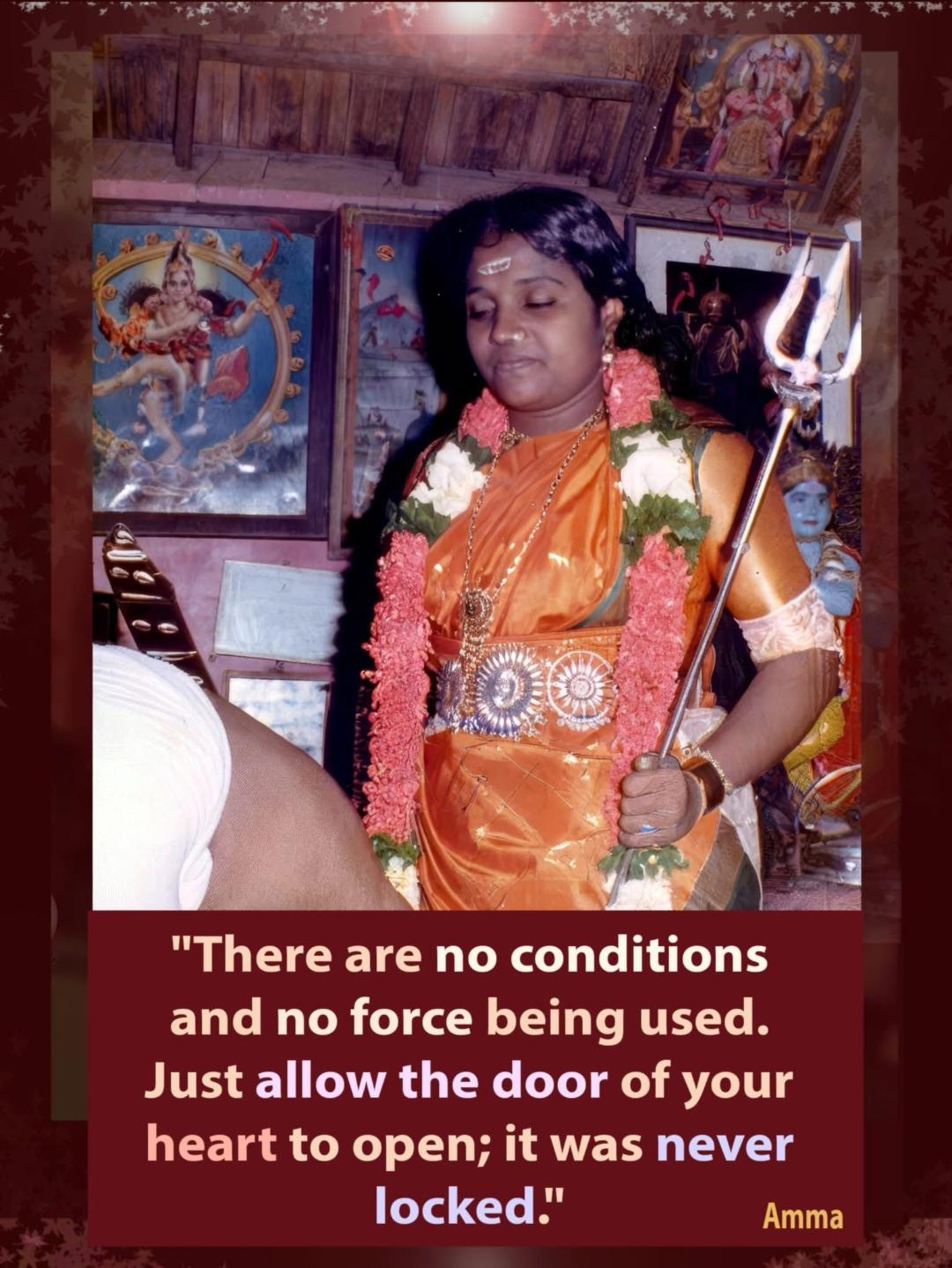 “When the desire to know the Self arises, you will start doing all the things that are required to attain that goal and start avoiding all the things that will take you away from it. The more love you develop for the goal and the more you understand the need for the various disciplines and spiritual practices, the easier it will be to adhere to those disciplines and practices. The love for the goal is like the petrol in your tank. It is what gives enthusiasm, energy and vitality in your practices.” ~ Amma